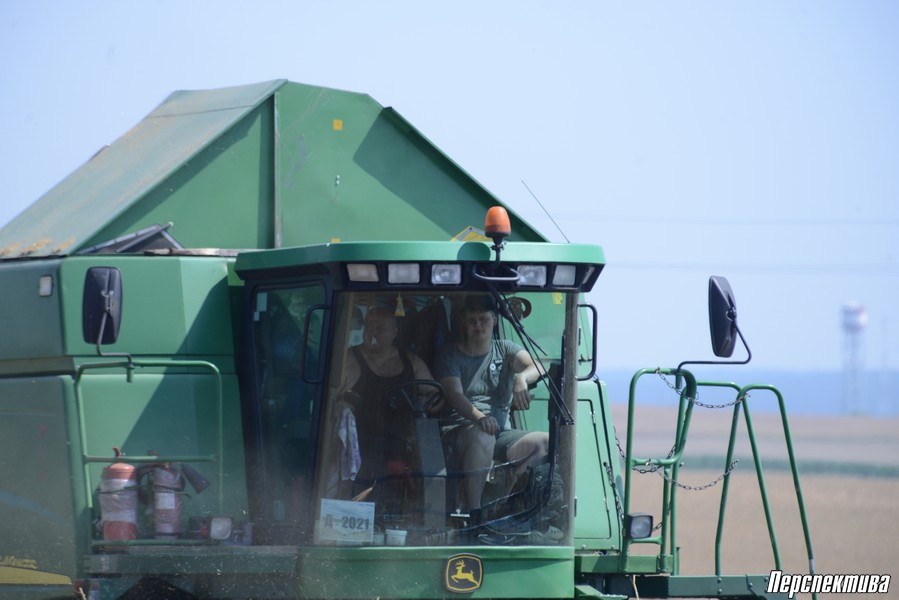 Андрей рассказывает, что даже в такую жару в кабине его «John Deere» комфортно: работает кондиционер. В поле с 8 утра и до 8 вечера, если стоит погода. Конечно, есть перерывы на обед и ужин.