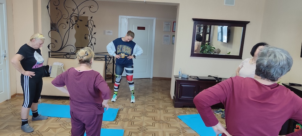 Зарядка включает комплекс упражнений, специально разработанных для пожилых людей. Они помогают поддерживать физическую активность, укреплять мышцы, улучшать координацию движений и повышать общий уровень энергии. Занятия проходят в комфортной обстановке под руководством инструктора ФСК, который следит за правильностью выполнения упражнений.